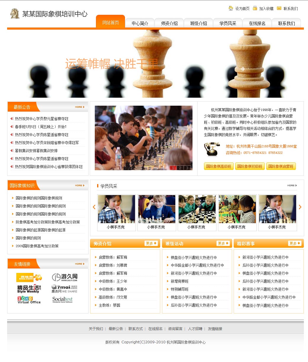 产品名称:国际象棋培训中心网站 (编号:4121) 管理系统:智能网站管理系统 包含模块:新闻文章模块,图片展示模块,留言反馈模块,企业招聘模块,企业留言模块 演示地址:http://demo.vhostgo.com/4121/ 哈尔滨爱古达科技有限公司致力于为哈尔滨的中小企业制作大气、美观的优秀网站,并且能够搭建符合百度排名规范的网站基底,使您的网站无需额外费用,即可稳步提升排名至首页。欢迎体验最佳的哈尔滨网站建设。